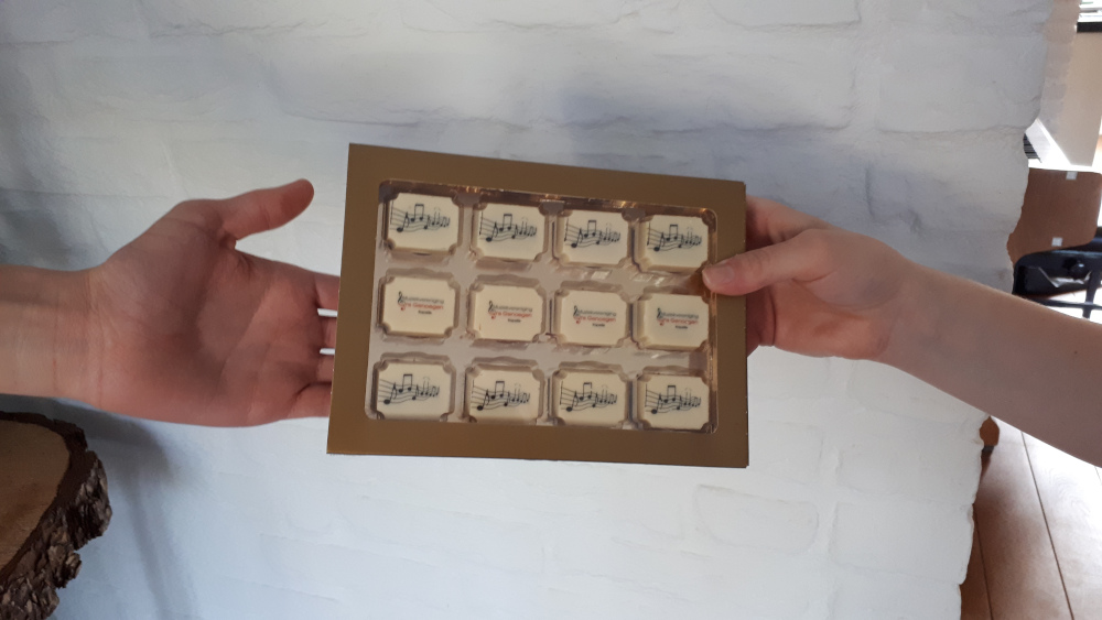 Wilt u binnenkort iemand verrassen? Of iemand een origineel kado voor moeder- of vaderdag geven? Of heeft u zelf zin in iets lekkers voor bij de koffie? Dan is dit uw kans. Sla uw slag met deze overheerlijke actie van Ons Genoegen. Wat te denken van overheerlijke muzikale bonbons? Bovendien is er ook nog een leuke prijs te winnen. Er zijn 3 doosjes met een gouden ticket, wat u recht geeft op vrije toegang voor twee personen bij één van onze toekomstige concerten. Wat houdt u nog tegen?