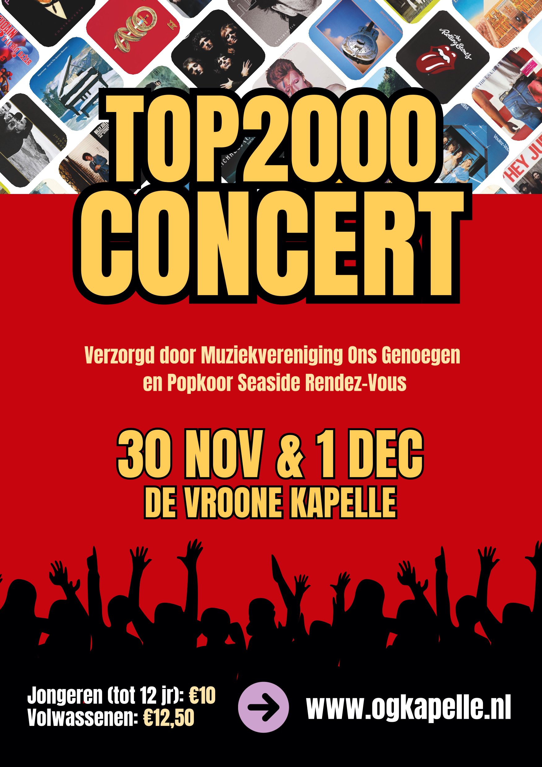 Het harmonieorkest zal in dit weekend tweemaal in samenwerking met Popkoor Seaside Rendez-Vous een top2000 concert verzorgen in de Vroone.