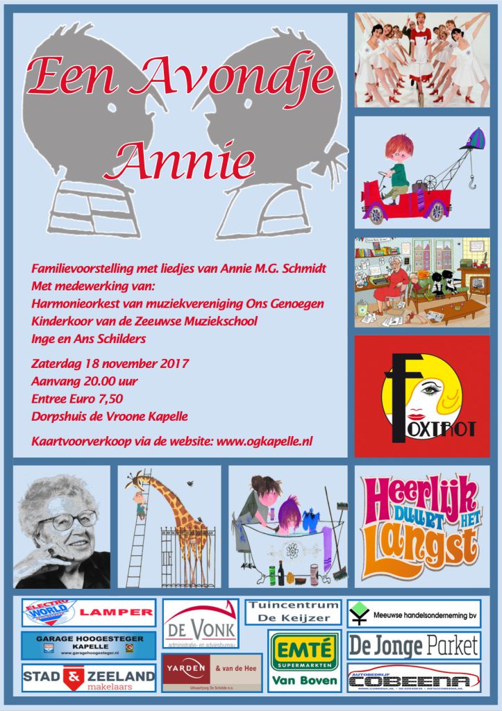 Foto’s: Een Avondje Annie 2017 / Concert / Door Web Master Voor een fotoalbum verwijzen we u door naar onze Facebook-pagina: Fotoalbum Een Avondje Annie