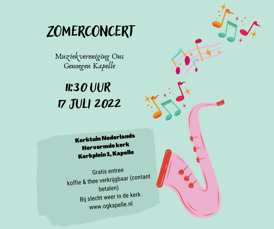 Dit concert zal plaatsvinden in de tuin van de Hervormde Kerk vanaf 11.30 uur.